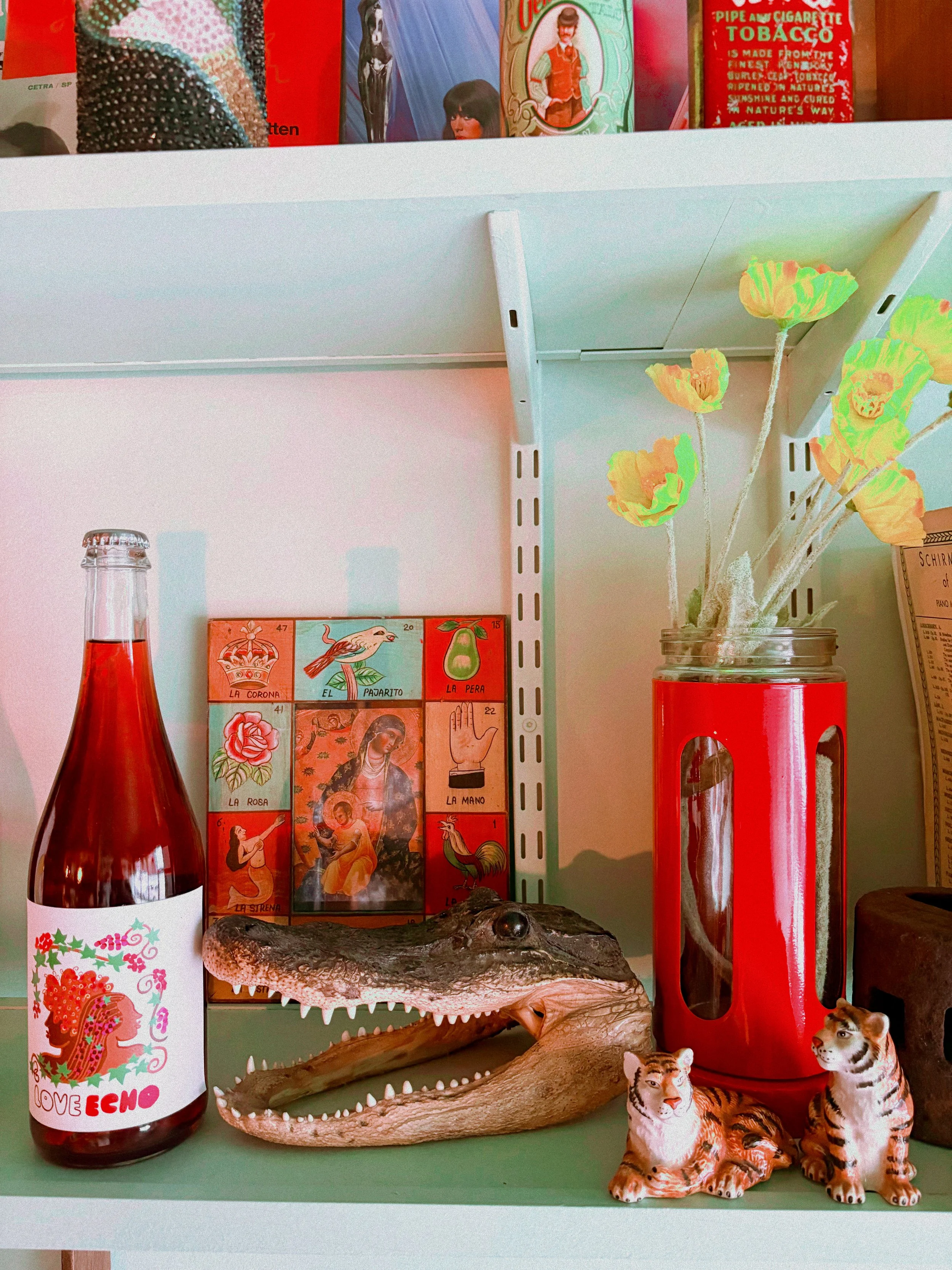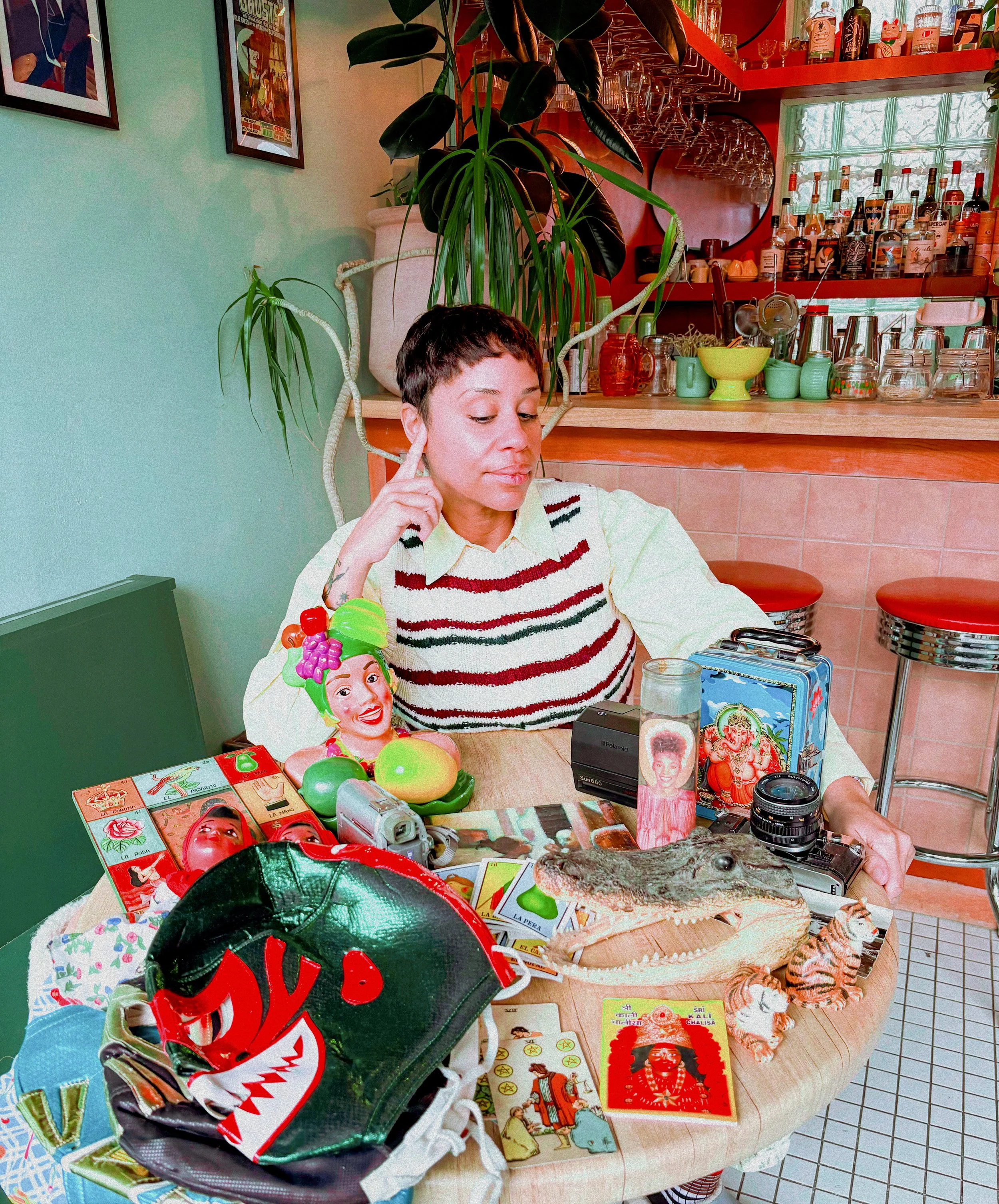 Luchador masks from random markets in Mexico, a couple of vintage cameras that might not work, tarot cards, lunchboxes, dolls, clowns, tiny tiger salt & pepper shakers, botanica candles, Black Americana collectibles, porcelain fruit, you name I had it.